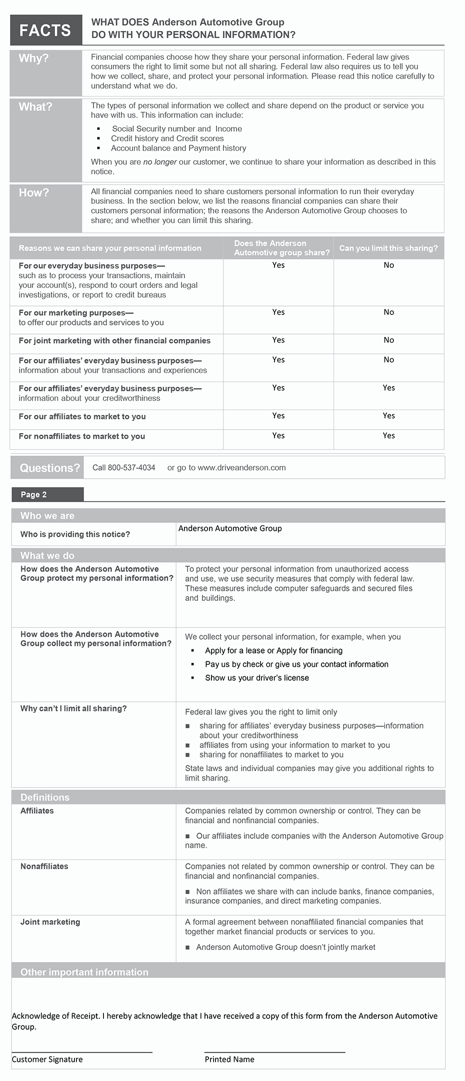 Information regarding Drive Anderson Kia on Perryville's privacy practices: